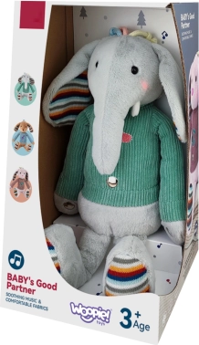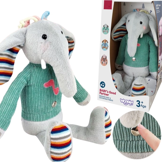 De interactieve pluchen olifant van het merk Woopie kalmeert en helpt je kind in slaap te vallen. Hij is niet alleen een schattige, zachte en knuffelige metgezel, maar ook een geweldige partner voor spel en plezier.