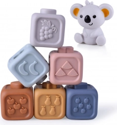 Sensorische siliconen blokken met cijfers en koala 2-in-1 – bijtring en educatieve bouwset WOOPIE