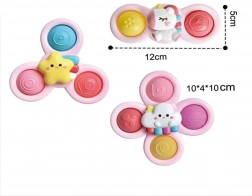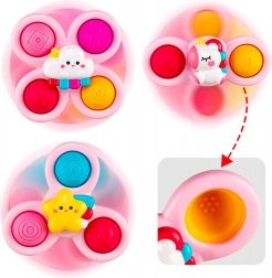 Met deze set van drie spinners van het merk WOOPIE zal uw kind versteld staan. De set bevat spinners in de vorm van een eenhoorn, ster en wolk. De spinners kunnen op verschillende oppervlakken worden bevestigd, zoals ramen of het bad tijdens het baden, het speelgoed is waterbestendig. Lagers zorgen voor langdurige rotatie en afneembare delen maken onbegrensde creativiteit mogelijk bij het combineren ervan. Het heeft rubberen delen met verschillende texturen die de zintuigen ontwikkelen en stress verminderen.