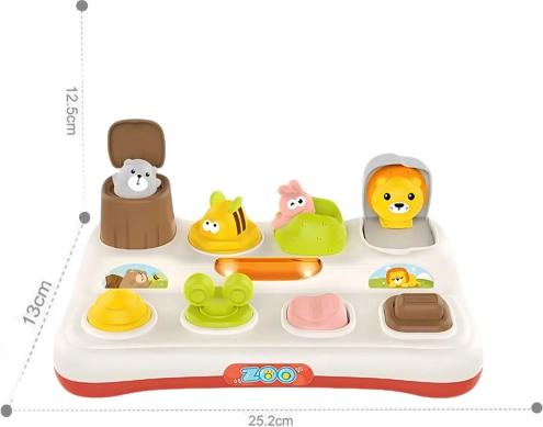 Ontdek plezier én leren in één met het interactieve WOOPIE-speelgoed – uitspringende ZOO-diertjes. Na activatie via een schakelaar, draaiknop of knoppen springt het diertje omhoog en verrast het kind. Het speelgoed is duurzaam en kwalitatief afgewerkt en ondersteunt uitstekend de fijne motoriek en het begrip van oorzaak-gevolg.