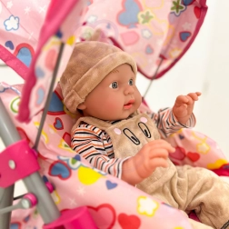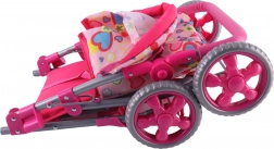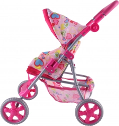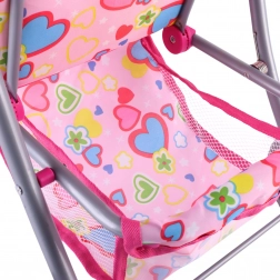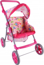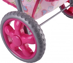 Een lichte en stabiele poppenwagen van het merk Woopie maakt elke kleine mama blij. Hij heeft een verstelbare duwbeugel, een opvouwbare kap, veiligheidsgordels en een praktisch mandje voor spulletjes. Dankzij de stille foamwielen is hij ideaal voor thuis en voor wandelingen, en na het spelen vouw je hem eenvoudig op om ruimte te besparen. Stijlvol design met hartjes waar kinderen dol op zullen zijn.