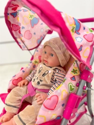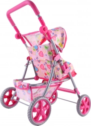 De kap beschermt de pop tegen de zon en het onderste mandje biedt ruimte voor alle kinderschatten.
