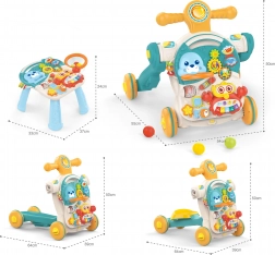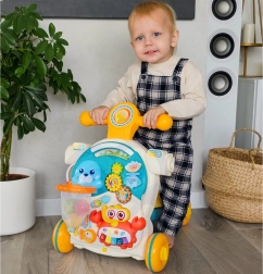 Dit speelgoed is een ware bron van verrassingen die het kind zelf kan ontdekken. De combinatie van meerdere functies in één speelgoed: looprek, step, loopvoertuig en educatieve tafel zorgt ervoor dat het speelgoed nooit verveelt.