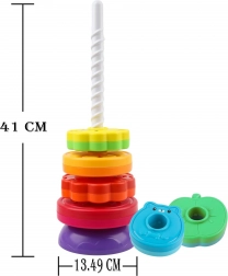 Het bouwen van een toren met ringen van verschillende maten en kleuren stimuleert logisch denken en creativiteit.