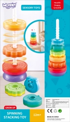 - De set bevat zes ringen in verschillende vormen, die op elkaar kunnen worden gestapeld om een kleurvolle, draaiende piramide te creëren
