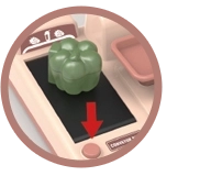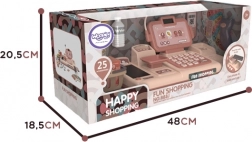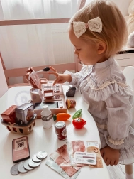 Scan items uit de set met het herkenbare piepje, leg ze op de weegschaal en noteer de prijs. Kinderen ervaren een echte aankoop van A tot Z.