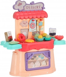 Inclusief ijsjes, donuts, snoepjes, schaaltjes, doosjes en andere accessoires voor realistisch winkeltje- en banketbakkerspel.