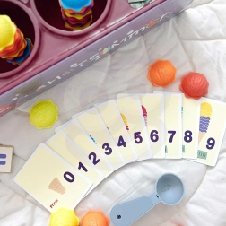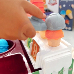 Bevat ijsbolletjes, hoorntjes, bestelkaarten en geld en ondersteunt zo rekenen en fantasierijk spel.