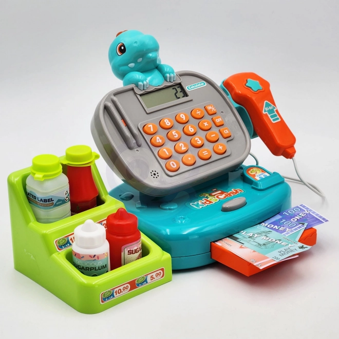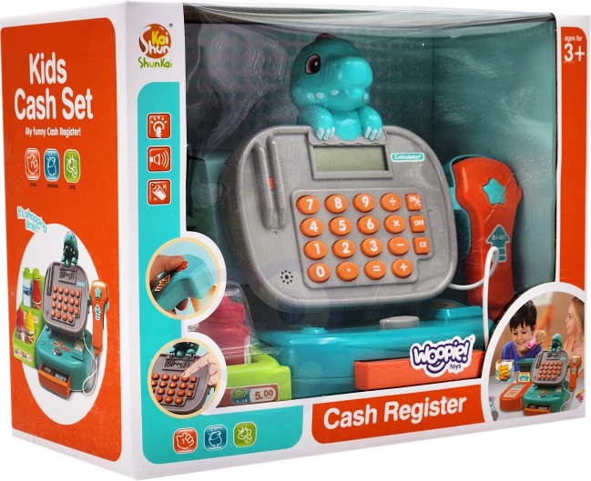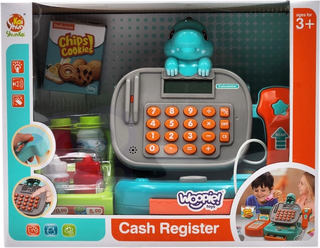 Een leuke kassa met dinothema van het merk WOOPIE brengt kinderen een realistisch winkeltje-spel. Bevat een werkende rekenmachine, een uitschuifbare geldlade, een scanner met geluiden en rijk accessoire voor eindeloze winkelscènes.