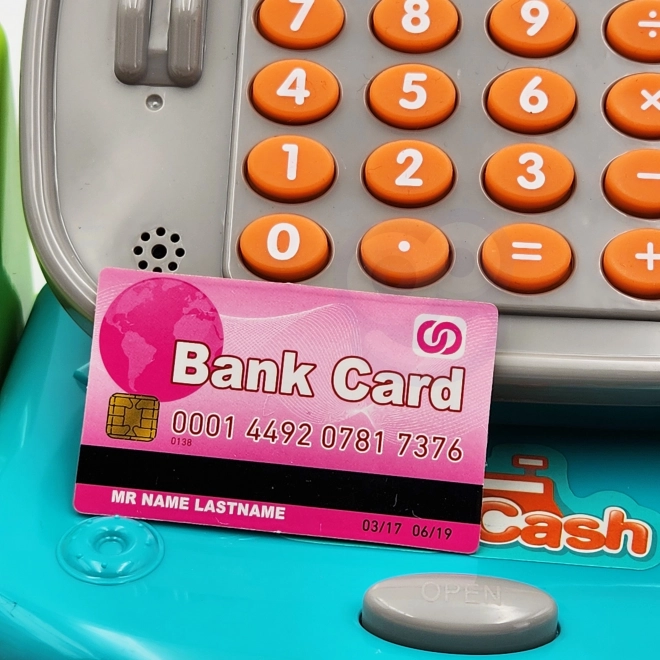 Maak je eigen thuisshop met de WOOPIE DINO kinderkassa in het blauw. Kinderen kunnen producten “scannen” met de scanner met realistische geluiden, de prijs intoetsen op de echte rekenmachine en betalen met munten, bankbiljetten of kaart. Er is ook een praktische plank voor goederen die het spel extra authenticiteit geeft.