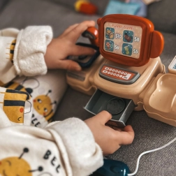 Kinderen kunnen producten “scannen” en authentieke scangeluiden horen. De kassalade en knoppen zorgen voor realistisch spel en leren over betalen.