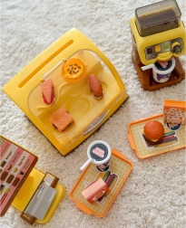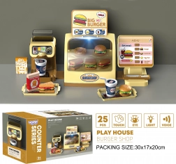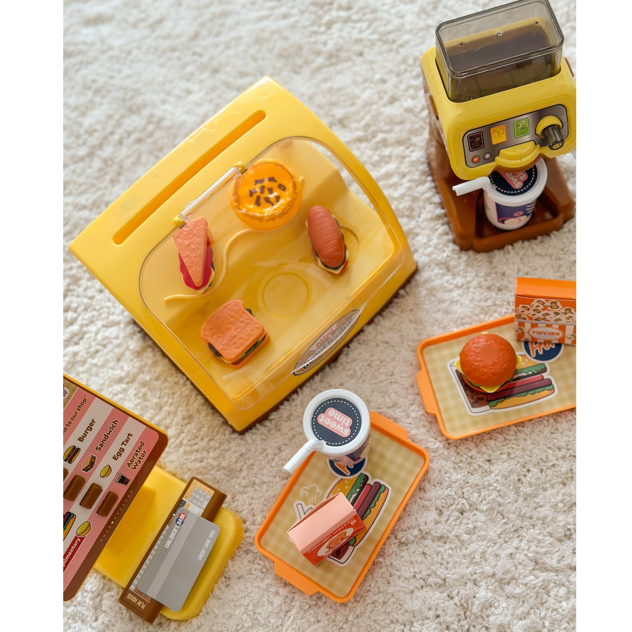 Tover de kinderkamer om tot een kleine fastfoodzaak. Kinderen kunnen bestellingen aannemen, eten en drankjes uitgeven en betalen met kaart of munten. De verlichte toonbankvitrine benadrukt het aanbod en het bedieningspaneel speelt na het indrukken de Engelse naam van het gekozen product af – een geweldige combinatie van plezier en leren.
