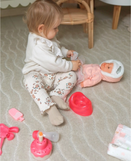 Dankzij de beweegbare armen en benen kun je de pop gemakkelijk laten zitten of staan. Perfect voor diverse speelscenario’s.