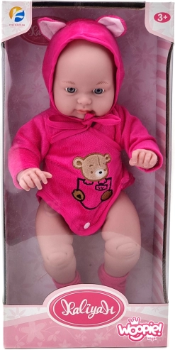 Baby-pop Woopie zou de favoriet van elk kind moeten worden! Ze is 46 cm hoog en gekleed in een roze outfit met capuchon en schoentjes. Met dit speelgoed leren kinderen empathie en verantwoordelijkheid.