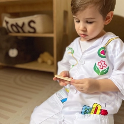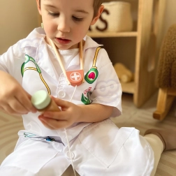 Rollenspel stimuleert de verbeeldingskracht en stelt kinderen in staat zich in de rol van een echte dokter te verplaatsen.