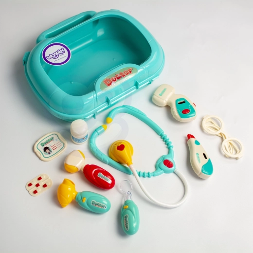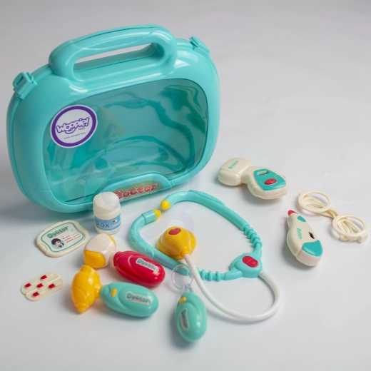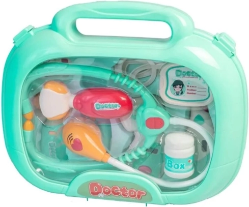 Dit alles is opgeborgen in een handig koffertje met handvat, wat gemakkelijk meenemen garandeert. Het kind kan zijn fantasie ontwikkelen en spelen dat het een dokter of patiënt is!