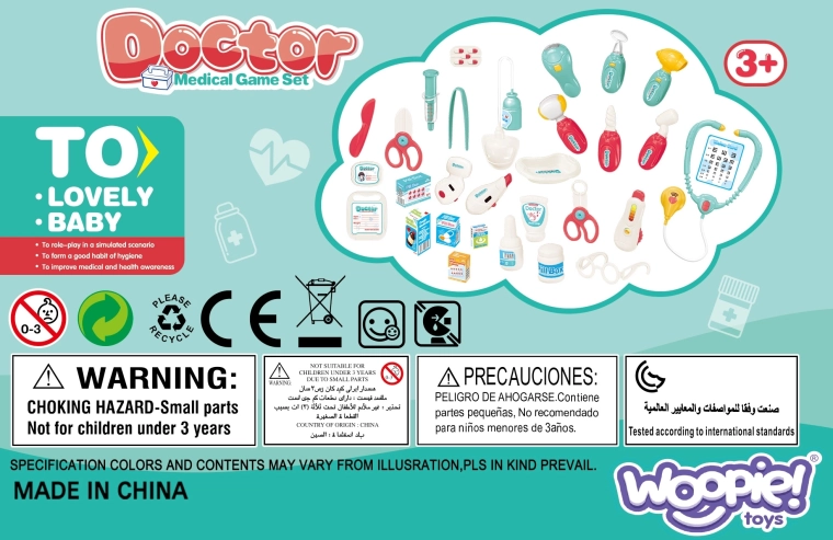 Plezier voor toekomstige dokters! De kleine doktersset van Woopie is het perfecte cadeau voor elk kind dat droomt van een carrière als arts. Deze set bevat verschillende medische instrumenten zoals een stethoscoop, bloeddrukmeter, thermometer en veel meer. Elk instrument is voorzien van speciale functies, waardoor het kind zich een echte dokter voelt.