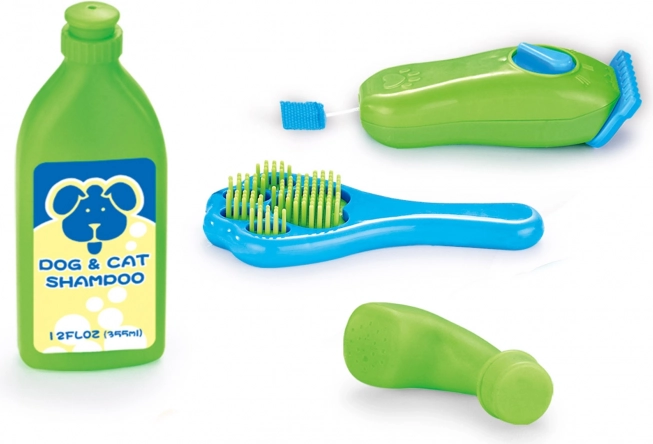 Borstel, shampoo, dispenser en tondeuse ondersteunen creatief rollenspel en leren de basis van hygiëne en huisdierverzorging.