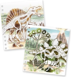 Ontdek de creatieve set voor kleine paleontologen: fóliokleurplaten met dinothema van DinosArt. Met een speciaal pen brengen kinderen eenvoudig glanzende folie-effecten aan op 12 sjablonen en creëren ze schitterende afbeeldingen. Inclusief stap-voor-stap instructies en interessante informatie over dinosaurussen – een ideaal cadeau voor creatieve kinderen.