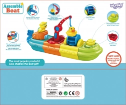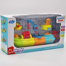 De kleurrijke badboot van WOOPIE brengt veel waterpret voor de kleintjes. Je stelt hem samen uit vier kleurrijke bootjes tot één grote boot, en dankzij de kraan met haak, het waterrad en het waterkanon verandert elk bad in een avontuur.