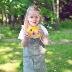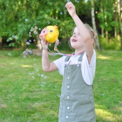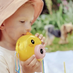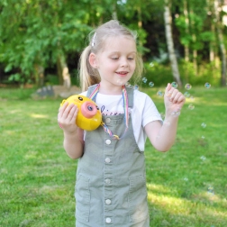 Het bubbeltreintje kuikentje WOOPIE is het ideale speelgoed voor kinderen vanaf 3 jaar. Eenvoudige bediening met de On/Off-knop, een rijke bellenproductie en een lichte constructie maken het tot de perfecte metgezel voor de tuin, speeltuin en kinderfeestjes.