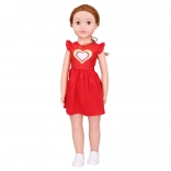 De lopende pop heeft knipoogjes en is gekleed in een prachtige roze blouse met een spijkerrok.
