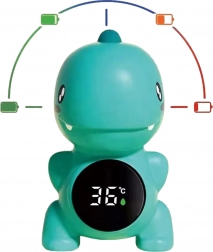 Geniet van een rustgevend bad zonder zorgen. De kinderthermometer WOOPIE Dino meet nauwkeurig de watertemperatuur én de luchttemperatuur en toont alles op een overzichtelijk elektronisch display. De gekleurde achtergrondverlichting laat direct zien of het water te koud, precies goed of te warm is.
