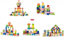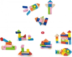 Blokken in verschillende vormen – kubussen, cilinders, bogen en dakjes – inspireren tot het bouwen van torens, huisjes en fantasierijke constructies en stimuleren de creativiteit.