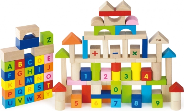 viga houten educatieve blokken 100 stuks – letters en cijfers