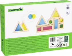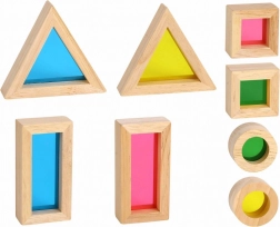 Ontdek de magie van houten gekleurde blokken van Tooky Toy, die niet alleen boeien maar ook uw kind onderwijzen. De set omvat 8 blokken in vier verschillende vormen: rechthoeken, vierkanten, cirkels en driehoeken.
