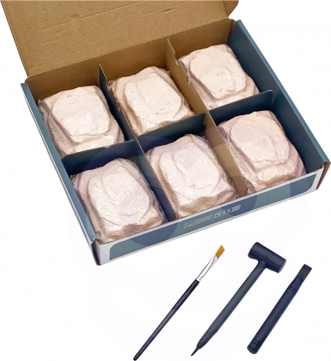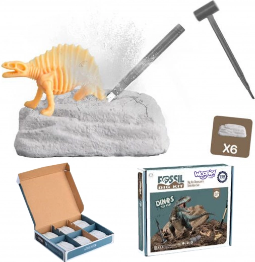 Bevat zes verschillende dinosaurus fossielen om op te graven, wat veel uren plezier biedt.