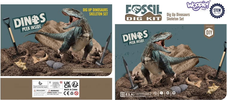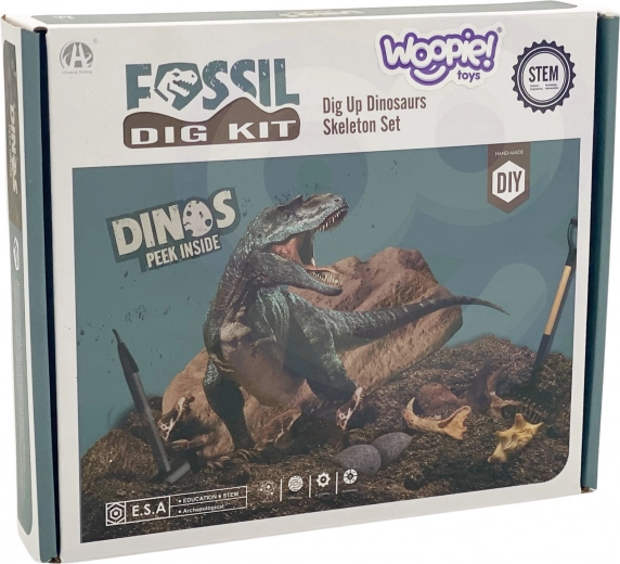 Geweldig cadeau voor kinderen die van dinosauriërs houden! De opgraafset van het merk WOOPIE maakt het mogelijk om dinosaurus skeletten te ontdekken en op te graven, en stimuleert de interesse in paleontologie en wetenschap.