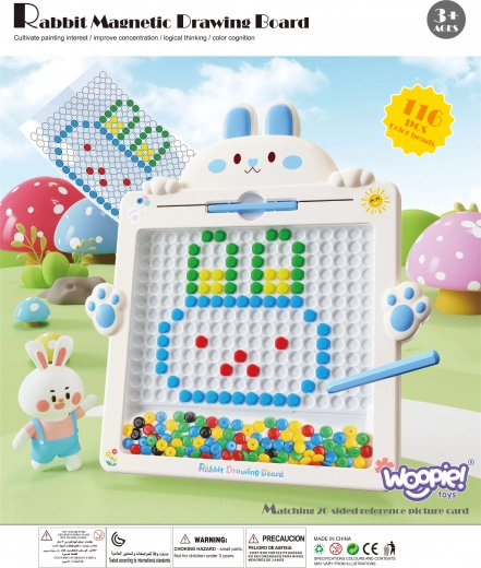 Met het magnetische tekenbord MagPad van WOOPIE duikt je kind in een wereld van creativiteit, waar alleen de eigen fantasie de grens is. Dit innovatieve hulpmiddel wordt geleverd met een magnetische pen waarmee kinderen hun eigen patronen en vormen kunnen leggen met 50 magnetische knopjes en 20 patronen op tien dubbelzijdige kaarten.