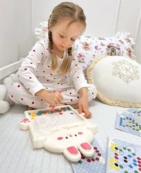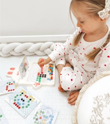 Met dit bord kunnen kinderen een onbeperkt aantal patronen en mozaïeken creëren naar eigen fantasie.