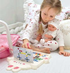 Het magnetische tekenbord WOOPIE is het ideale hulpmiddel voor de ontwikkeling van kindercreativiteit en motorische vaardigheden. De set bevat een magnetische pen en 50 gekleurde magnetische knopjes, waarmee originele patronen volgens de fantasie van het kind kunnen worden gemaakt. De knopjes zijn stevig en duurzaam, en het ordenen ervan is intuïtief en eenvoudig. Dit speelgoed is niet alleen leuk, maar ook een uitstekend hulpmiddel voor leren en het ontwikkelen van handvaardigheid, concentratie en verbeeldingskracht.
