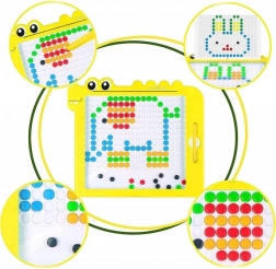 Kinderen maken kleurrijke afbeeldingen en patronen volgens sjablonen of hun eigen fantasie. De magnetische knopjes blijven stevig zitten en zijn gemakkelijk te gebruiken, zelfs voor de allerkleinsten.