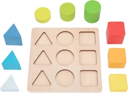 - Betekenisvol speelplezier: 9 stukjes (driehoek, vierkant, cirkel) voor herhaaldelijk leggen en sorteren.