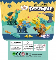 Ontdek de creatieve wereld van bouwen met WOOPIE dinosaurussen om te monteren. In de set vind je 3 kleurrijke dinosaurussen die kinderen zelf in elkaar zetten met behulp van een boormachine en schroevendraaier met verwisselbare bits. Na het monteren hebben de dinosaurussen een beweegbare kop, staart en ledematen voor nog leuker spel. Een geweldig speelgoed voor de ontwikkeling van de fijne motoriek, geduld en creativiteit, opgeborgen in een praktisch draagbaar koffertje.