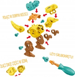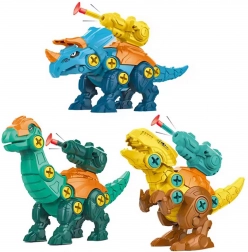 - 3 dinosaurussen om te monteren – kleurrijke onderdelen, schroeven en beweegbare gewrichten.