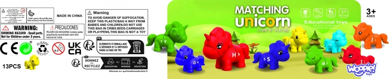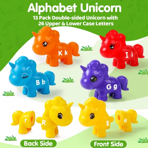 De set kleurrijke eenhoorns is ontworpen om urenlang eindeloos en leerzaam plezier te bieden. Met deze speeltjes kunnen kinderen het alfabet leren door delen te verbinden die gemarkeerd zijn met letters.