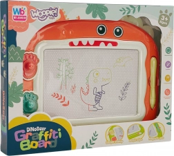 Het magnetische tekenbord van WOOPIE met een vrolijk dinosaurusmotief is ideaal voor de eerste strepen, vormen en letters. Kinderen kunnen vrij creëren, wissen en opnieuw tekenen – zonder papier en zonder rommel. Deze speelgoedset ondersteunt de fijne motoriek, fantasie en creativiteit en stimuleert het kind op een natuurlijke manier tot schrijven en tekenen.