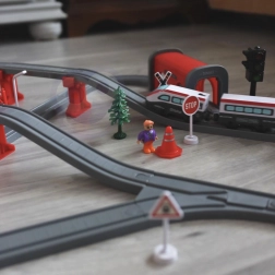 De locomotief en accessoires hebben een realistische uitstraling met een modern design, wat kinderen niet alleen plezier bezorgt maar ook basiskennis van verkeerssignalen bijbrengt.