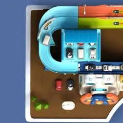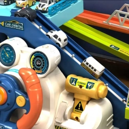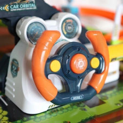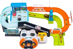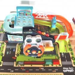 De kleurrijke baan bevat hellingen, bruggen en parkeerplaatsen. Kinderen kunnen met meerdere autootjes racen en een breed scala aan speelscenario’s creëren.