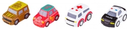 De set bevat vier verschillend ontworpen en gekleurde autootjes, zoals een Jeep, een klassieke wagen, een ambulance en een politiewagen. Elk autootje heeft een uniek design voor diverse speelsituaties.