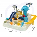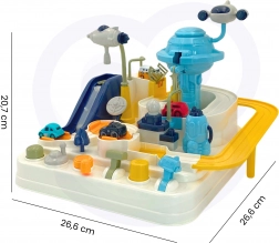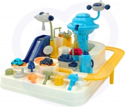 De interactieve baan in de stijl van een kosmische basis verandert elke dag in een spannende missie. Kinderen activeren handmatig de mechanismen, wisselen de wissels en sturen met de lanceerder voertuigen naar de baan. Dankzij de robuuste constructie en veilige randen is het speelgoed ideaal voor dagelijks spel en vaardigheidsontwikkeling.