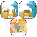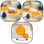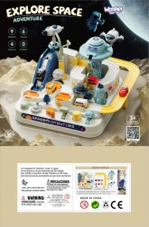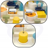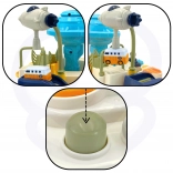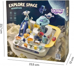 Ontdek het oneindige universum van de verbeelding met de interactieve autobaanset van Woopie. Kinderen besturen de beweging van de voertuigen met mechanische hendels, knoppen en schakelaars – zonder batterijen. De leuke kosmische basis met een lanceerder, bewegende platforms en een lift traint de fijne motoriek, het logisch denken en de oog-handcoördinatie.