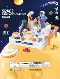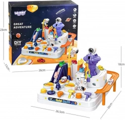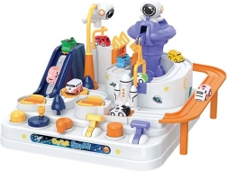 De set bevat drie autootjes (motief willekeurig toegewezen), zodat kinderen kunnen genieten van soloritten, estafettes en tijdraces over verschillende routes van het ruimtestation.