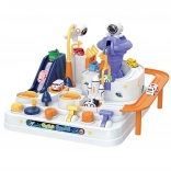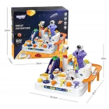 Het ruimtestation verandert in een actierijke speelzone: kinderen plannen de route, nemen obstakels en sturen met knoppen en bedieningselementen de autootjes over hellingen, liften en draaiende platforms. De magnetische raket vervoert voertuigen „door de lucht” naar de ophaalbrug, die naar wens kan worden neergelaten en opgehaald.