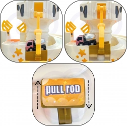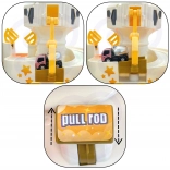Trekt het autootje aan en verplaatst het naar de hefbrug.