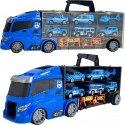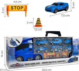 Ideaal speelgoed voor kleine fans van politievoertuigen! Deze set bevat een grote transport truck die 4 politieauto's, een helikopter en andere waarschuwingsborden kan vervoeren voor realistisch spel. Kinderen kunnen het afschietmechanisme gebruiken om autootjes naar verschillende afstanden te lanceren. De lengte van de truck is 40 cm, wat groot genoeg is om alle voertuigen en accessoires op te bergen. Het plezier is daardoor niet alleen vol actie, maar ook educatief.